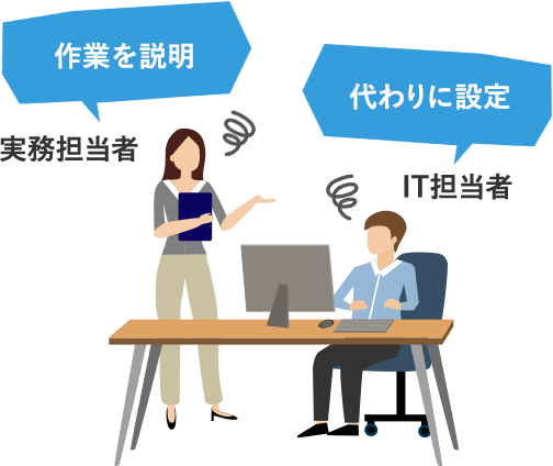 設定・修正をするためには毎回IT担当者に作業内容を説明する必要があります。![]()