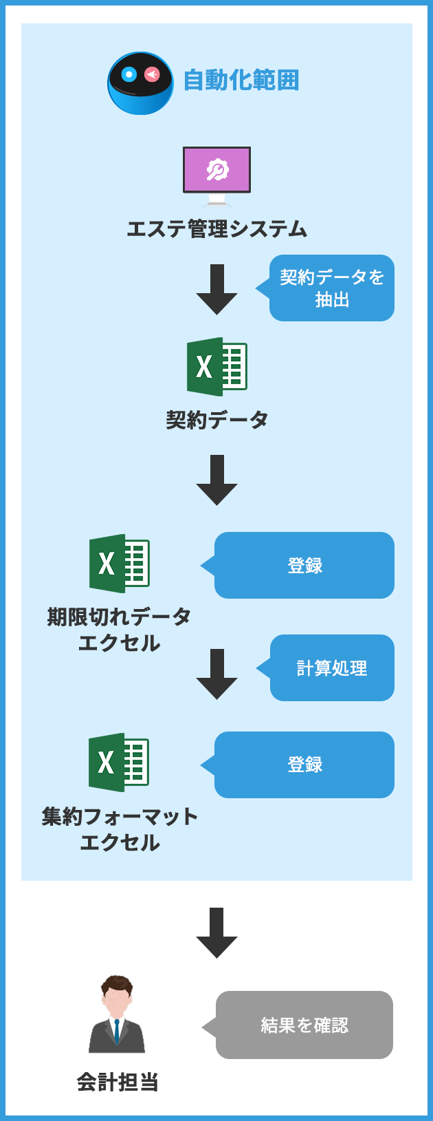 自社システムを活用した集計作業。独自のフローに合わせてロボをカスタマイズ